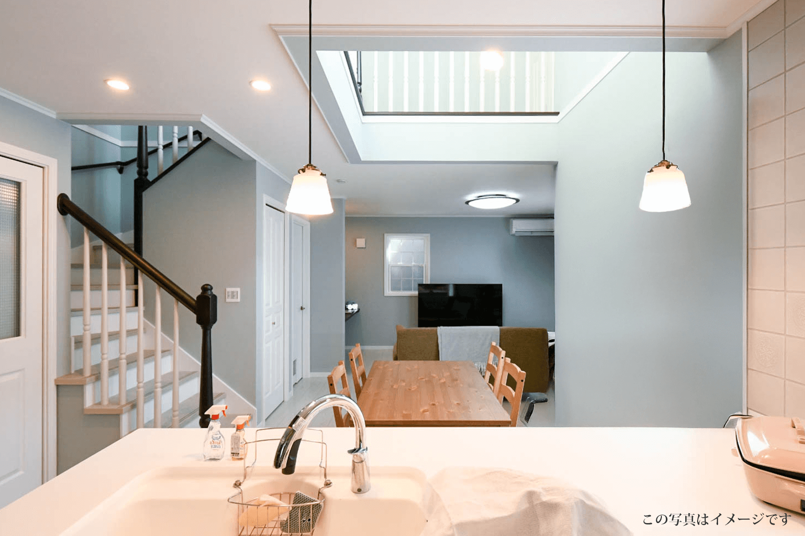 ・家族がつながる対面キッチンと吹き抜け付きの大空間LDK