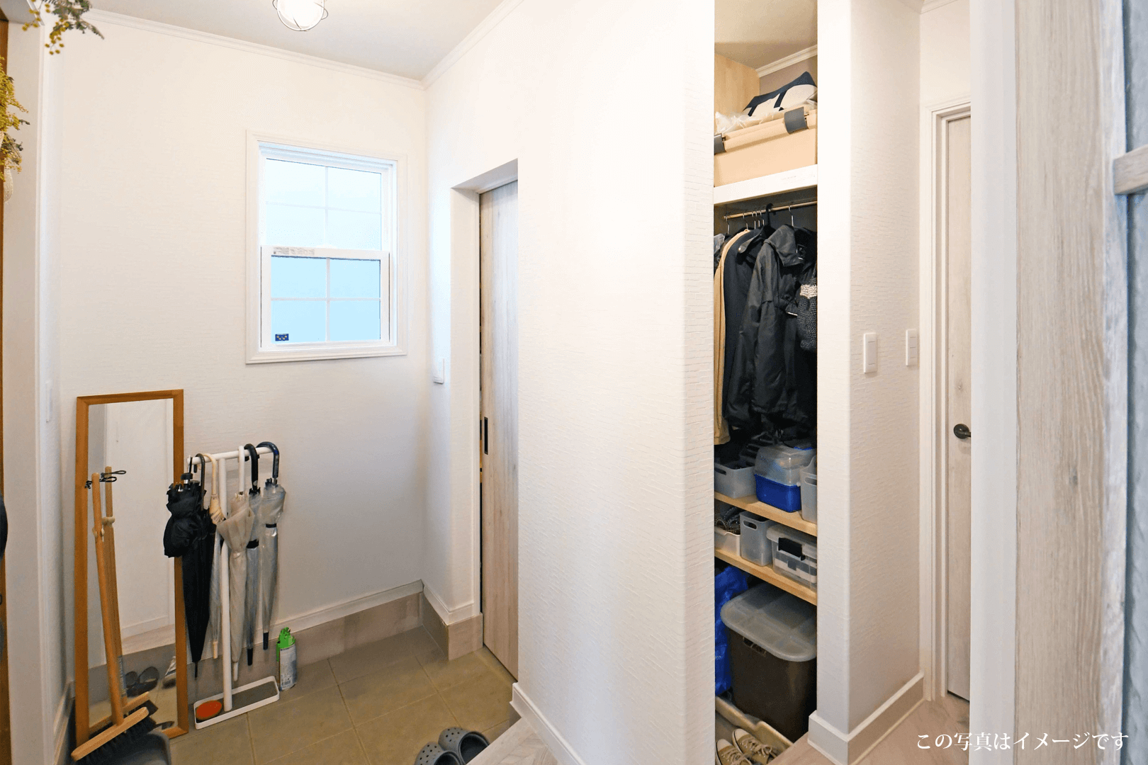 ・扉を閉めることで、シューズクロークの中が見えなくなり、急な来客時にも生活感を隠すことができます。