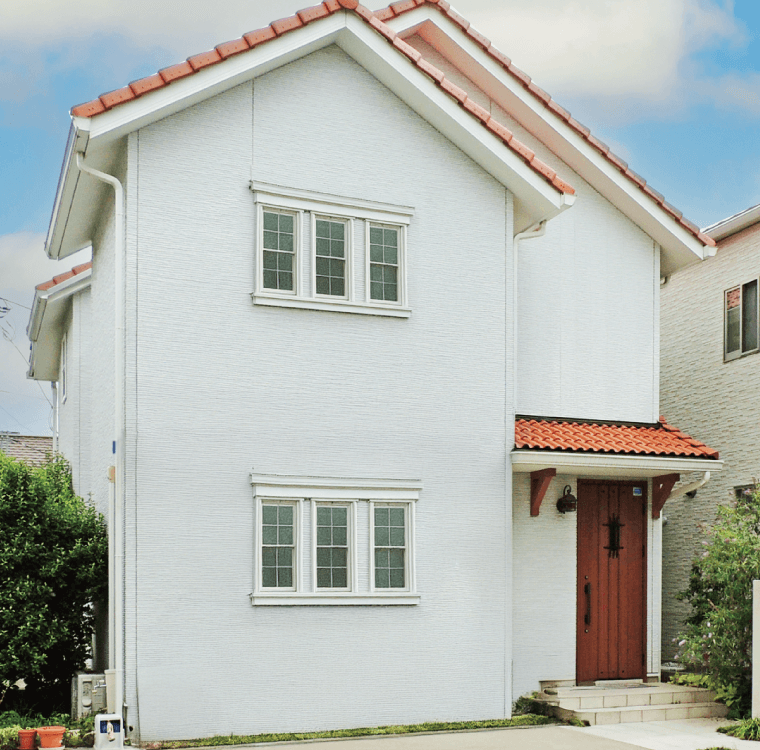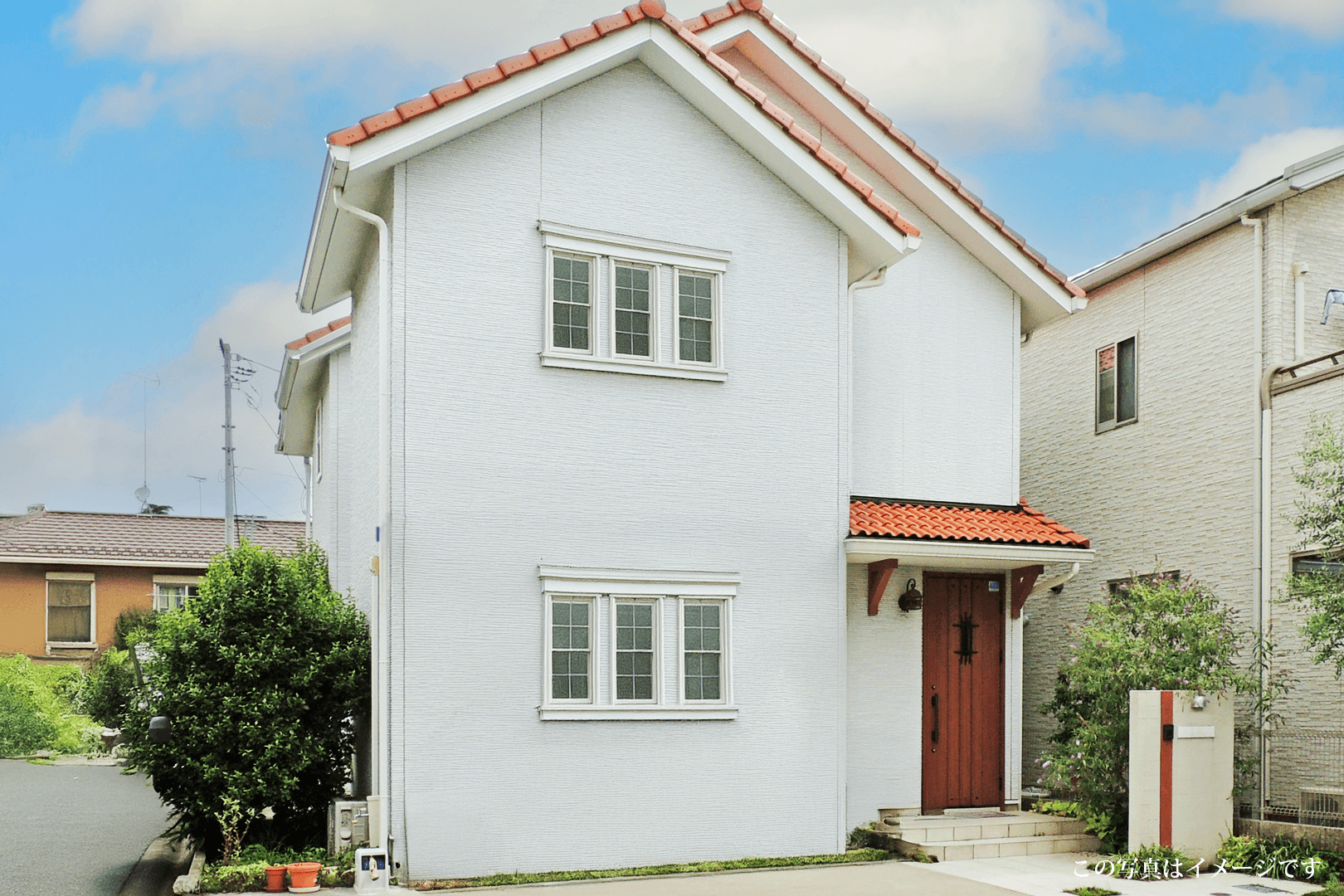 オレンジ色の瓦屋根がかわいい南欧テイストの外観