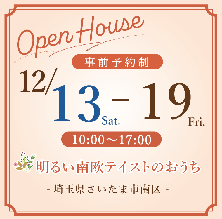 12/13-12/19(土-金)完成見学会/明るい南欧テイストのおうち