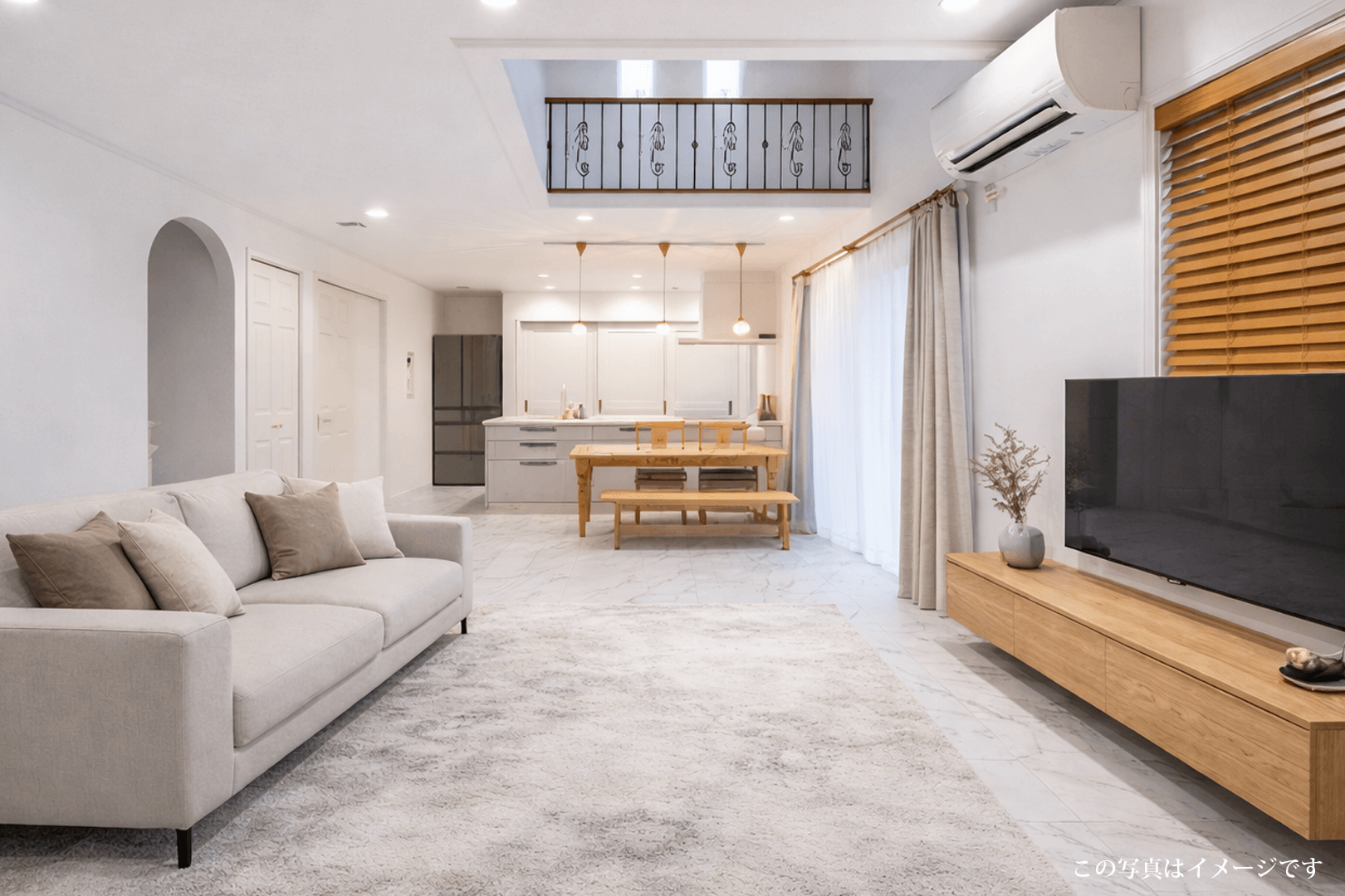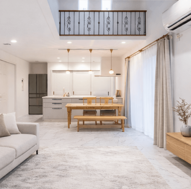 ・開放感のある吹抜けが広さ以上のゆとりを感じられる空間です。