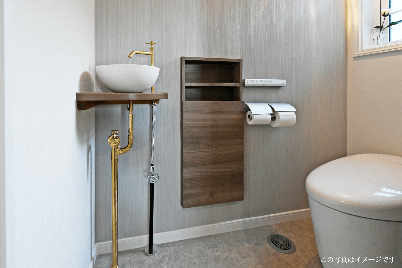 ・かわいいボウル型手洗いが印象的。