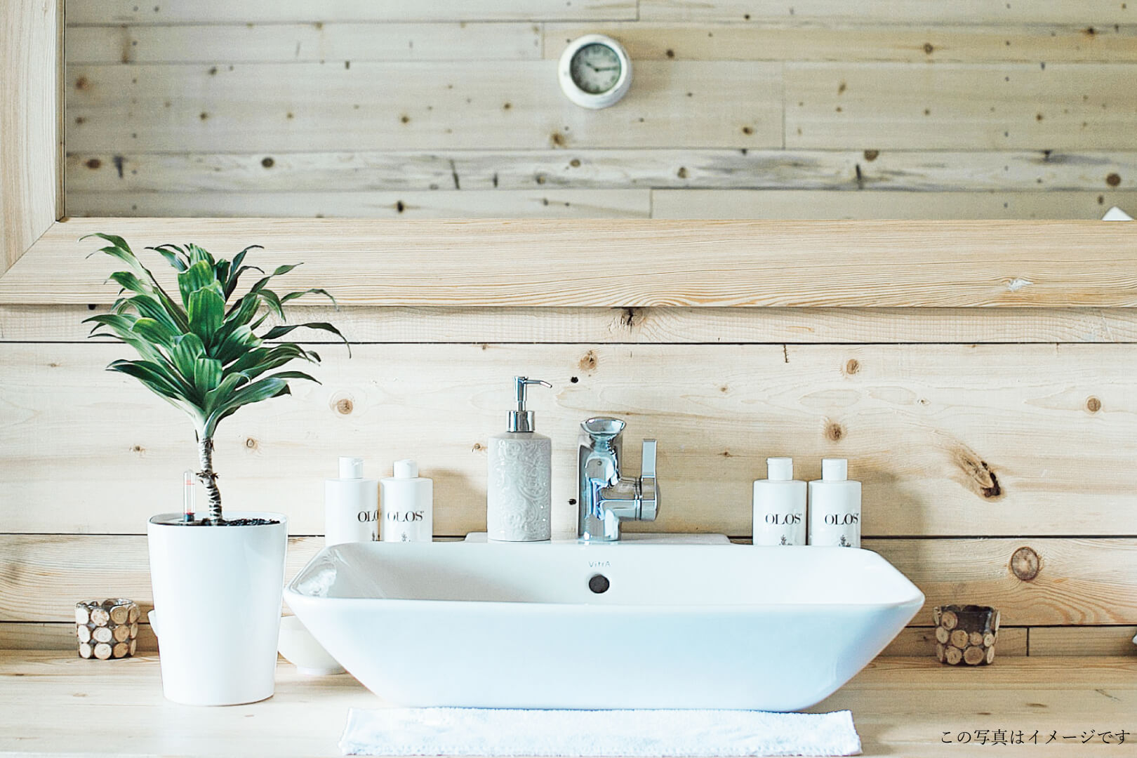 洗面室はヒノキの壁でちょっとした森林浴